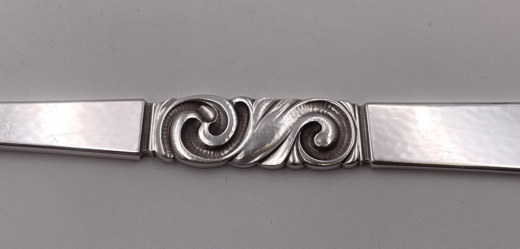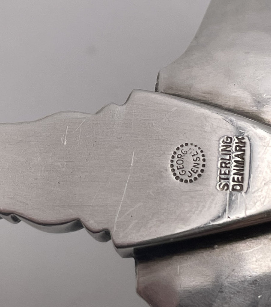 Danish silversmith Georg Jensen (1866-1935) set up his own silver business in 1904 in Copenhagen. Jensen's training in metalsmithing, along with his education in the fine arts, allowed him to combine the two disciplines and revive the tradition of the artist craftsman. Soon, the beauty and quality of his creations caught the eye of the public and his success was assured. In 1912, expansion of his studio began in earnest. By 1917, he had built a workshop brimming with hundreds of employees. Jensen was awarded the Grand Prix at the world exhibition in Paris in 1925 and again in Barcelona in 1929. The sale of Jensen silver went really well and in the early 1930s there were Jensen shops in Paris, London, Berlin, Brussels, Geneva, Barcelona, Stockholm, St. Thomas, Buenos Aires and New York apart from the ones in Denmark. By his death in 1935, Georg Jensen was an international house of design where inspired artisans carried on a tradition of blending expert craftsmanship with forward-thinking design. In his obituary the New York Herald Tribune called him “the greatest silversmith of the last 300 years.”