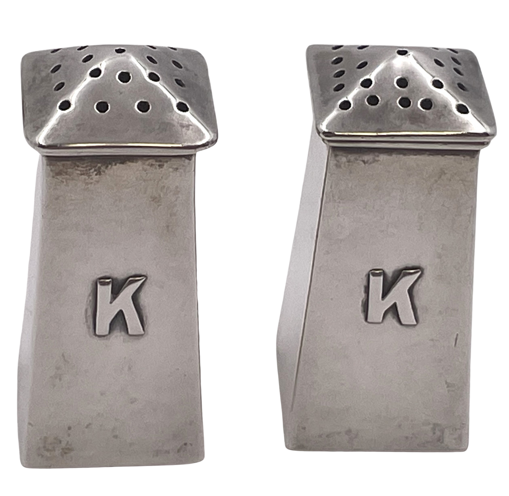 Pair of Lebolt Sterling Silver Hammered Salt & Pepper Shakers in Arts & Crafts Style