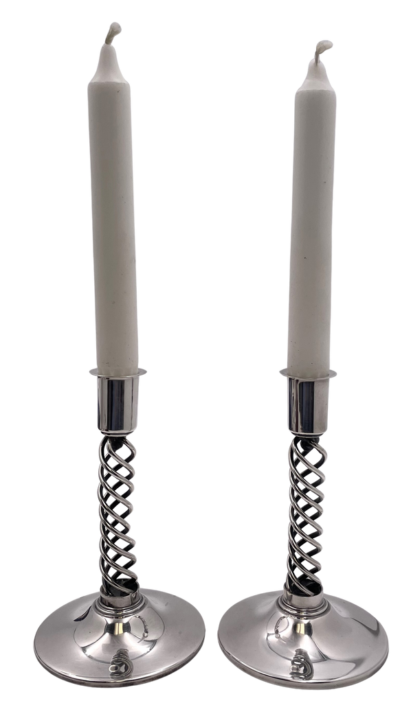 Pair of Danish Silver Candlesticks in Mid-Century Modern Style