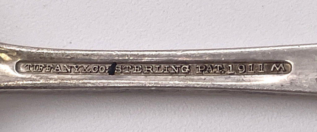 Rare Pomellato sterling silver duck-shaped honey dish with a Tiffany & Co. spoon, in Mid-Century Modern style with an elegant, geometric design. The honey dish measures 3'' in height by 3 1/2'' in depth and the spoon measures 4'' in length. Total weight is 4.4 troy ounces. Hallmarks are shown.