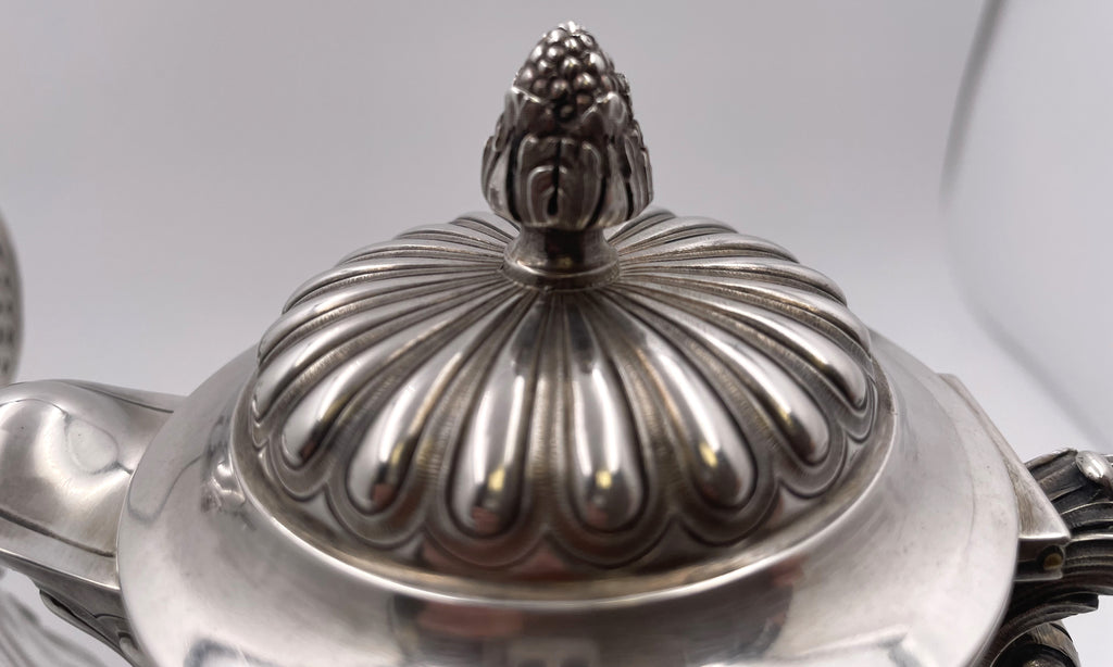 Pair of French Sterling Silver and Cut Glass Carafes/ Pitchers from Late 19th Century