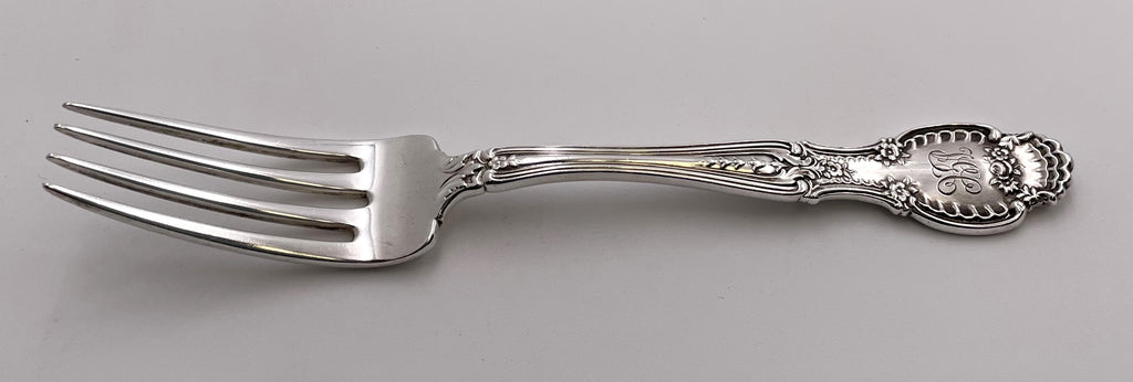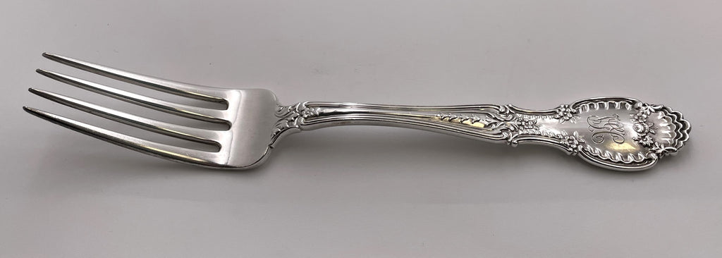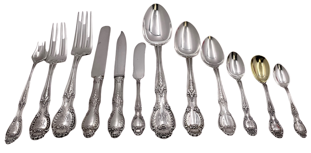 Tiffany & Co. sterling silver flatware set in the celebrated Richelieu pattern, from 1892. adorned with shell and floral motifs, consisting of: