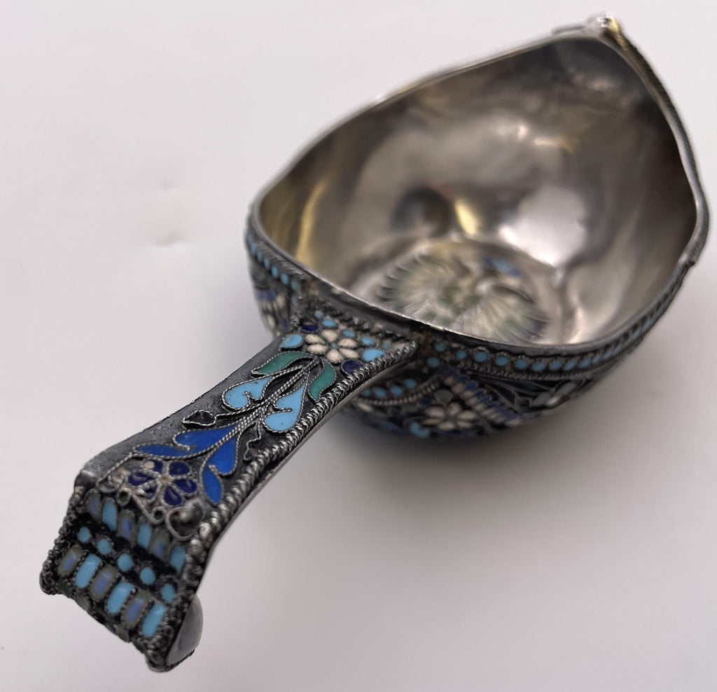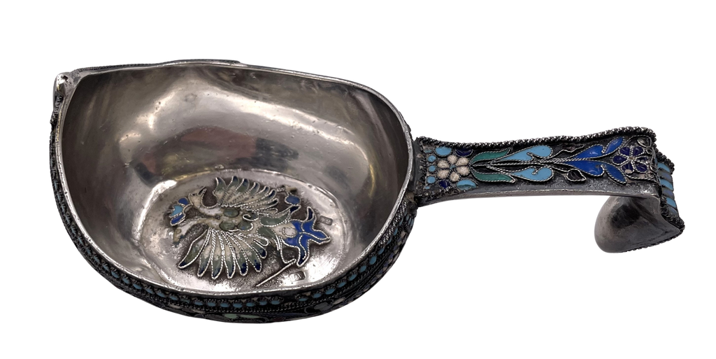 A. Fuld Russian Enamel & Silver Kovsh from Late 19th or Early 20th Century